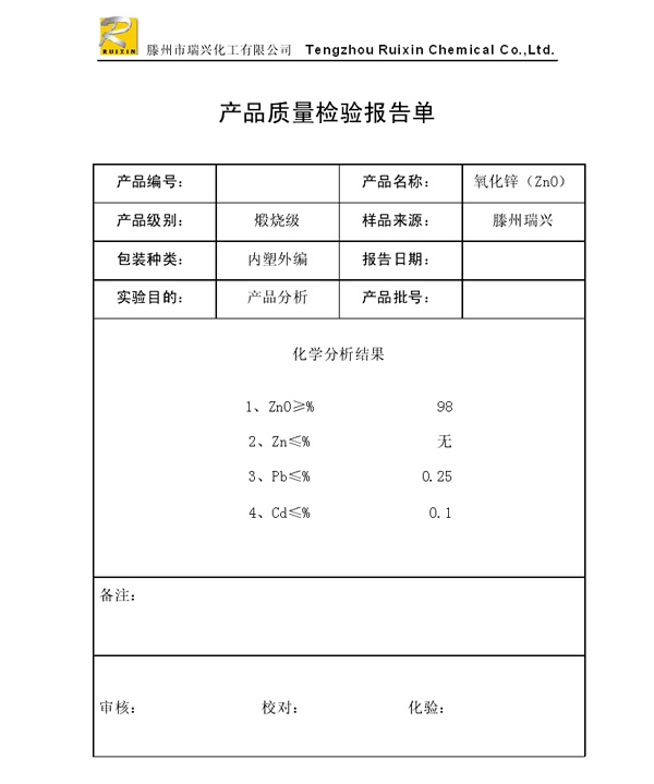 瑞興化工有限公司是生產(chǎn)氧化鋅的重點(diǎn)企業(yè),于2008年通過(guò)ISO9001:2008質(zhì)量管理體系認(rèn)證。“瑞興”牌氧化鋅在國(guó)內(nèi)擁有較大穩(wěn)定的市場(chǎng),并遠(yuǎn)銷(xiāo)東南亞、中東、中南美等國(guó)家和地區(qū),在國(guó)內(nèi)外享有較高聲譽(yù)。